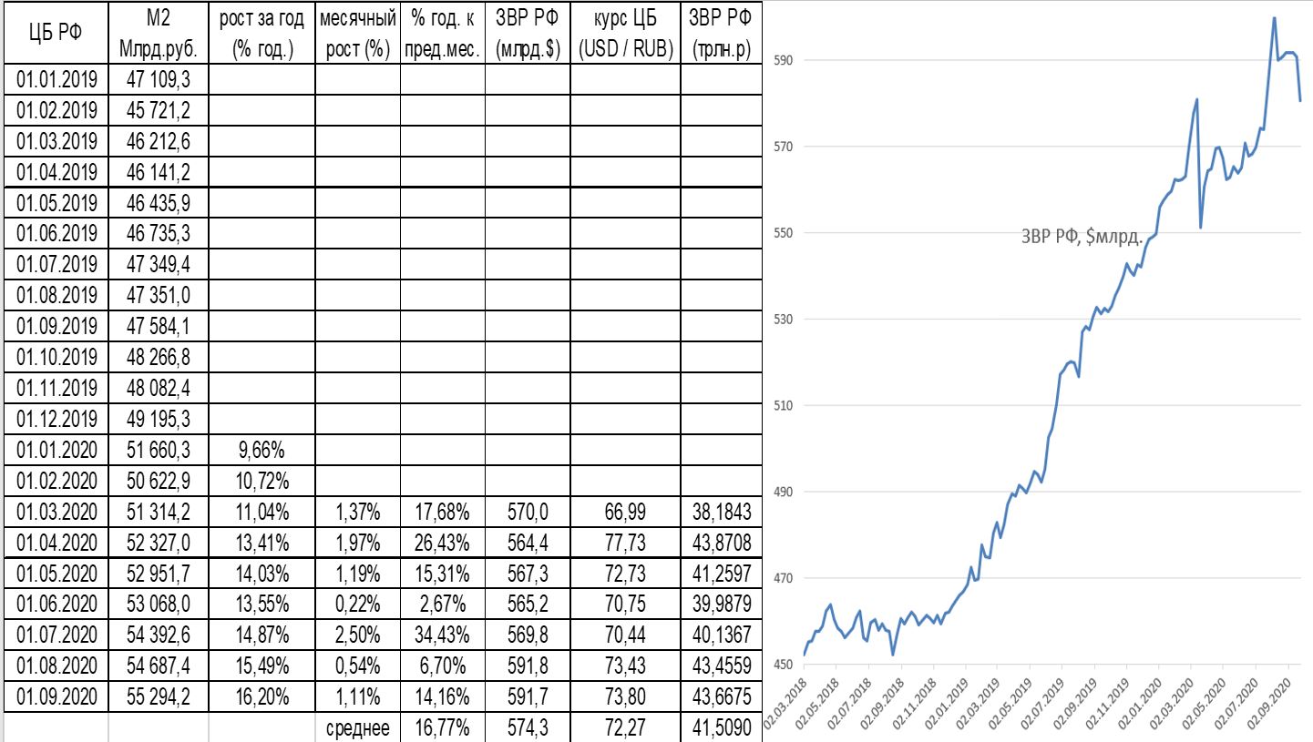 динамика денежной массы М2 и золото-валютные резервы (ЗВР).