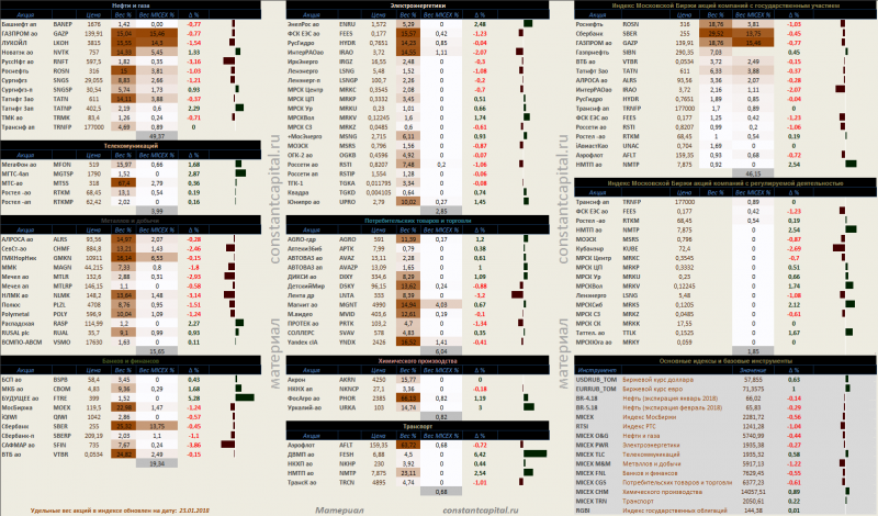 Динамика акций за текущий день, в структуре отраслевых индексов, и индексов государственного сектора.