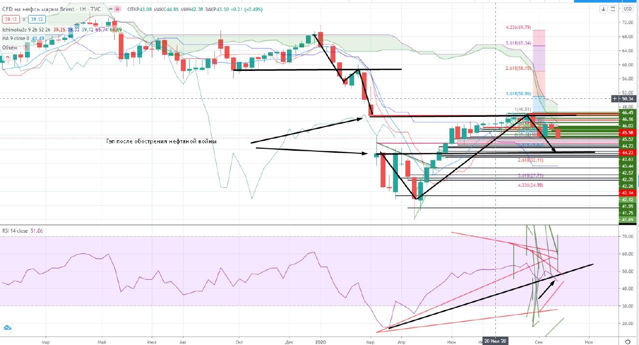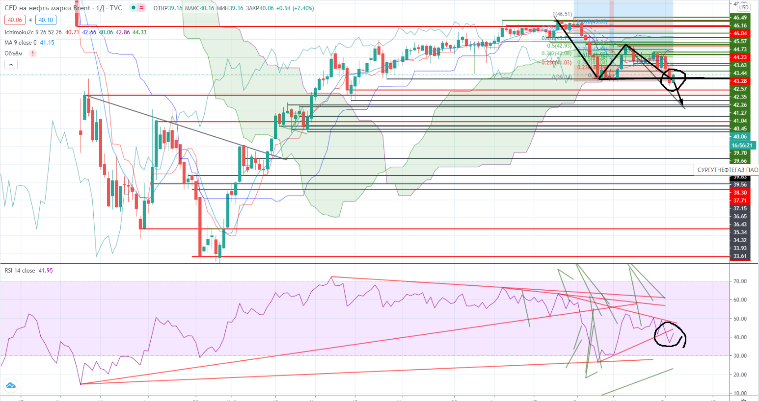 На дневных графиках пробили реперный уровень $39,7, а от него очень многое зависело (https://www.finam.ru/analysis/marketnews/fyuchers-s-p-upal-na-soobshenii-o-zabolevanii-kovidom-trampa-20201002-09500/). Если пробой был истинным, то нефть должна продолжать падать хотя бы в район $36± (мишень от пробоя), а следом за ней и наш рынок тоже в глобальном плане. Но по утру она опять бодра и опять в районе $40. Пока не сдается...