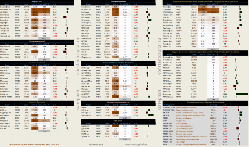 Динамика акций за текущий день, в структуре отраслевых индексов, и индексов государственного сектора.