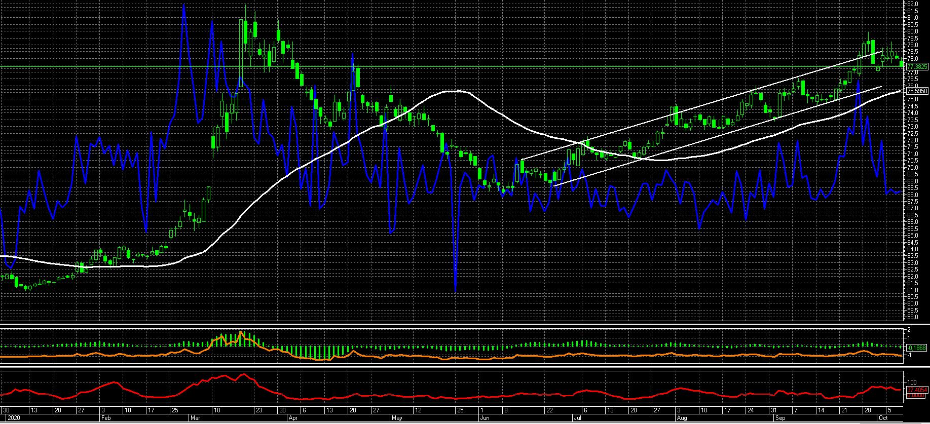 USD / RUB на валютной секции: боковик 76 — 79р. за доллар.