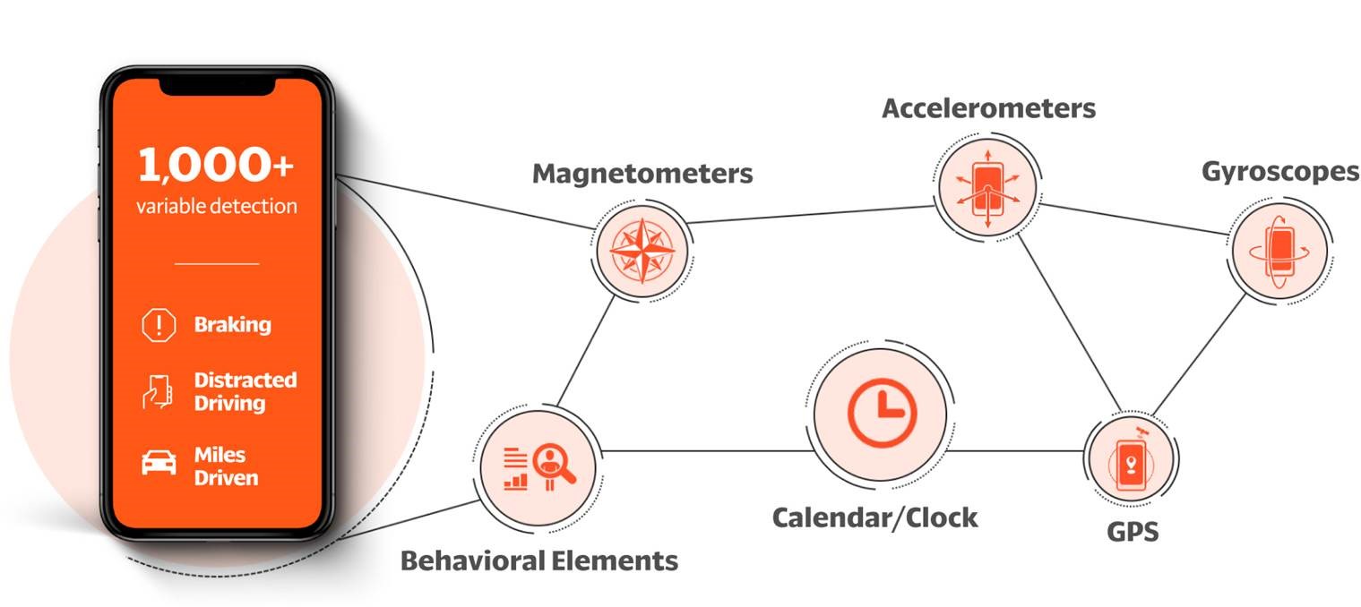 - Многие конкурирующие телематические программы используют устройства OBD2, часто называемые «донглами», которые подключаются к бортовой диагностической системе автомобиля или порту OBD и, по их мнению, уступают мобильным решениям. Устройства OBD2 фиксируют вращение колеса на посекундной основе и поэтому эффективны для измерения скорости и резкого торможения, но в остальном ограничены в их способности фиксировать другие формы поведенческих данных, такие как отвлеченное вождение. Кроме того, развертывание устройств OBD2 в рамках телематической программы связано со значительными расходами и является источником недовольства клиентов, поскольку устройство необходимо физически доставить клиенту, правильно установить и обслуживать или заменять с течением времени.