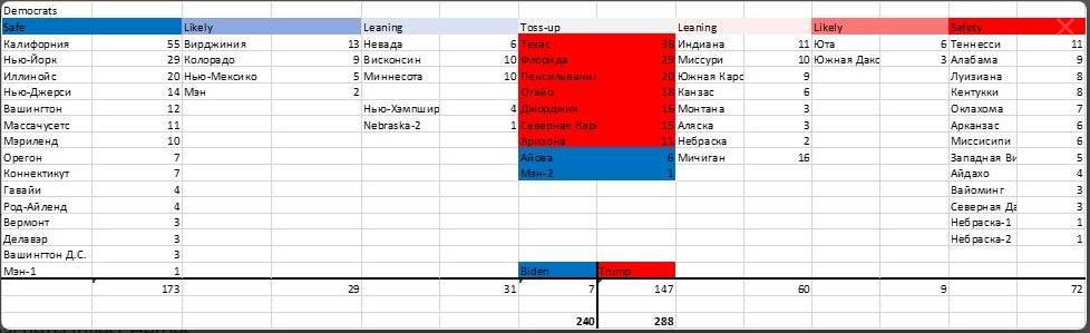 - Расклад сил по версии консенсус-прогноза сильно отличается – там почти уверенность в победе Байдена: