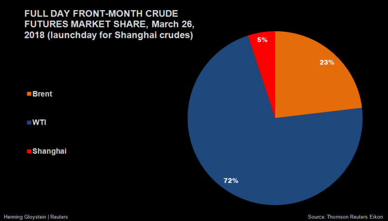 Всем доброго утра! Нефть немного остановила свой стремительный рост начатый на прошлой неделе. Цены на нефть консолидируются около 70 долларов. На дневном графике цены на нефть пришли в область сильной перекупленности. Конечно нельзя исключать новых ценовых всплесков, но на этих уровнях предпочтительней играть от шорта. Цены на нефть стали сильно расходиться с индексом промышленных металлов, обычно такие сильные расхождения нивелируются. Для примера цены на медь упали почти на 10%, а цены на нефть вблизи максимальных значений. Тут либо цены на нефть упадут, либо цены на медь вырастут. Но учитывая общую нервозность на фондовых площадках, увеличение волатильности, начало «торговых войн» и главное на мой взгляд это появление нефтеюаня – то мне кажется все эти факторы будут оказывать понижательное давление на сырье, в том числе и нефть.