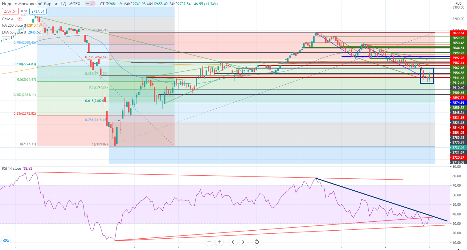 Зато в рубле все пока логично. Повторили локальный хай и остановились. RSI имеет «дырку» с трендом, поэтому возможный пробой может быть ложным. Ситуация мегасложная, ведь от результатов выборов зависит очень многое, и рубль не исключение. Лотерея!