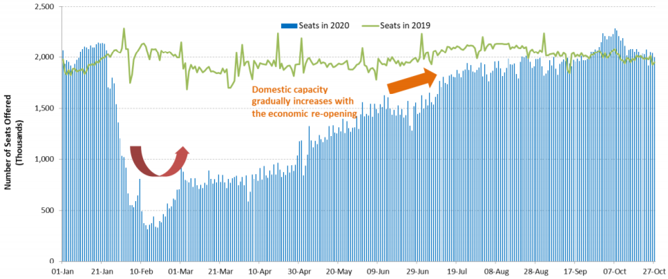 Китай очень быстро оправился от последствий пандемии и единственный в мире показал рост ВВП. Более того, пассажиропоток уже восстановился до уровней 2019 года: