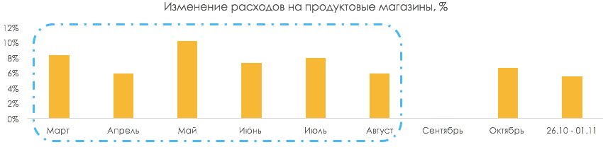 При этом расходы на продуктовые магазины в октябре и ноябре растут.
