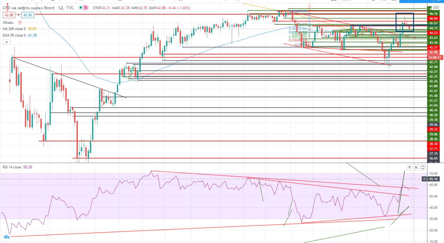 Нефть (как и писал ранее (https://www.finam.ru/analysis/marketnews/torgovat-v-sberbanke-kategoricheski-nelzya-20201112-09350/)) похоже не продолжила свой рост. Вышла статистика по запасам нефти, и в отличии от предполагаемой бычьей она вышла прямо противоположной. Такое впечатление, что устраивают игрища этими данными. Очень странно, что примерно (по модулю) цифры совпали, но со знаком не угадали.