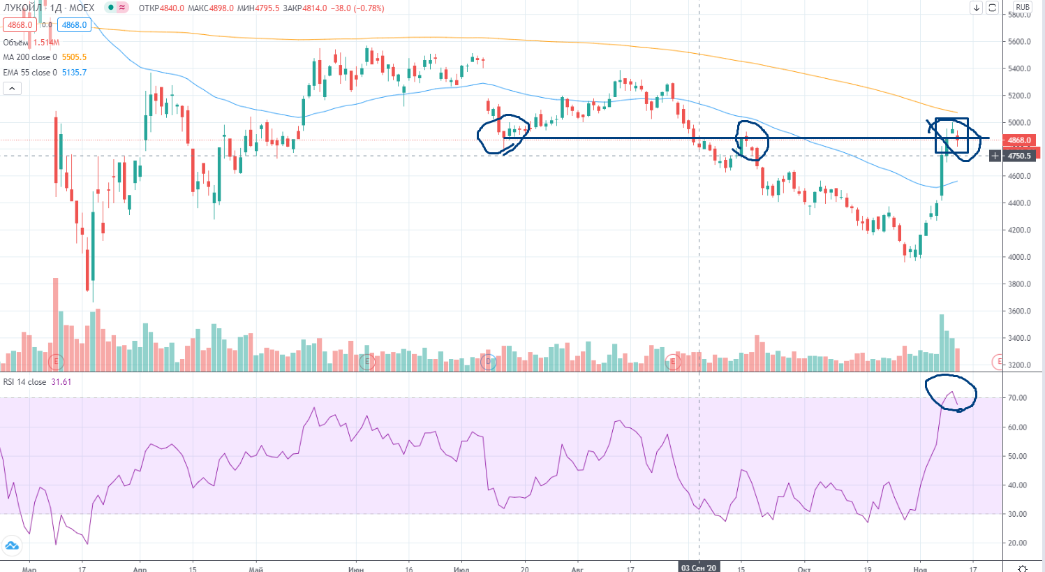 Т.к. самыми интересными бумагами этой недели были Сбер и Лукойл, хочу их рассмотреть поподробнее.