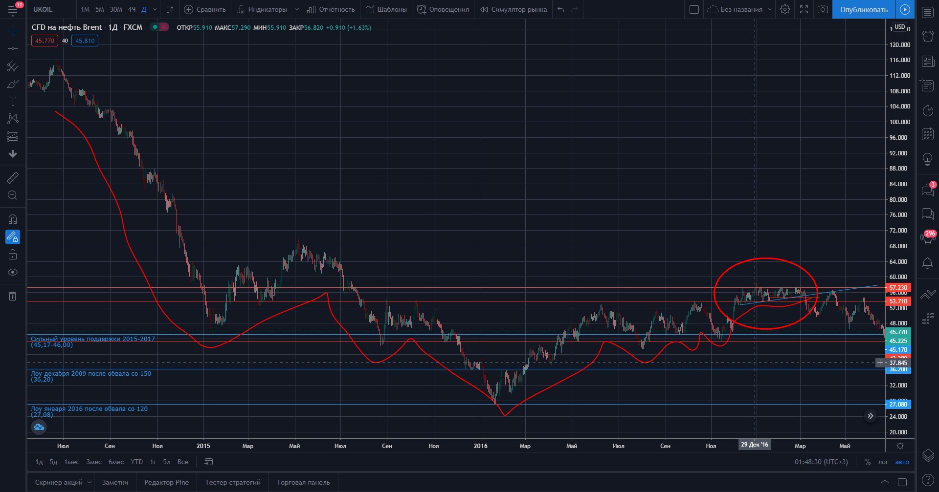 Рис. 1. 1D. CFD Brent. Формирование боковика в 2017-ом году.