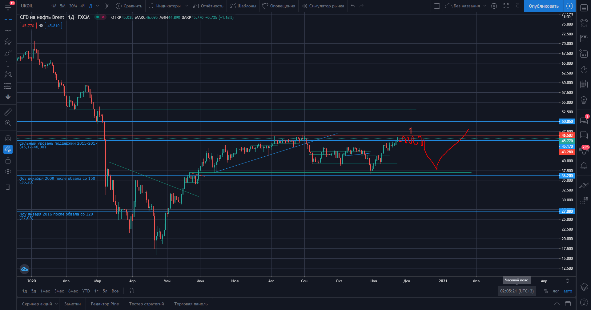 Рис. 3. 1D. CFD Brent. Первый вариант развития боковика.