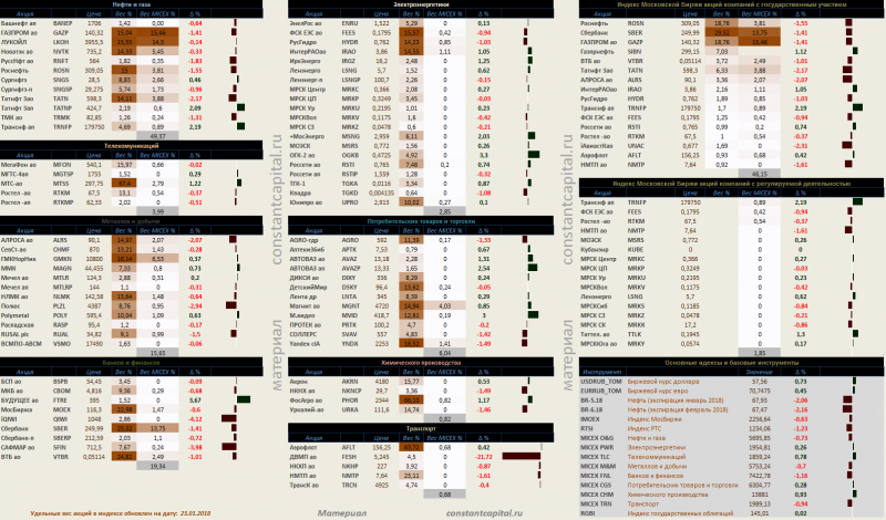 Динамика акций за текущий день, в структуре отраслевых индексов, и индексов государственного сектора.
