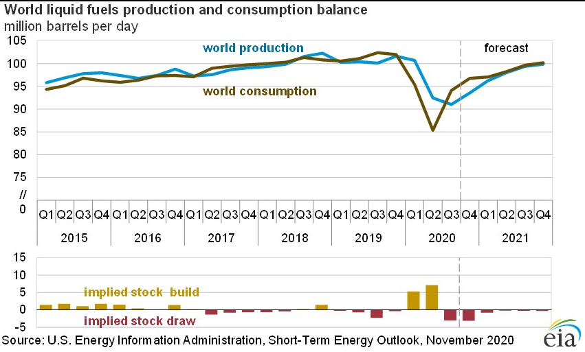 Причины восстановления лежат в сути проблемы. Карантины и снижение международной мобильности и промышленной активности из-за этого привели к падению потребления углеводородов. С переходом пандемии из активных проблем в «хроническую» стадию без больших системных последствий спрос на нефть будет восстанавливаться. На росте экономик Китая, Индии и других стран он будет драйвиться выше докризисных 100 млн барр./сутки.