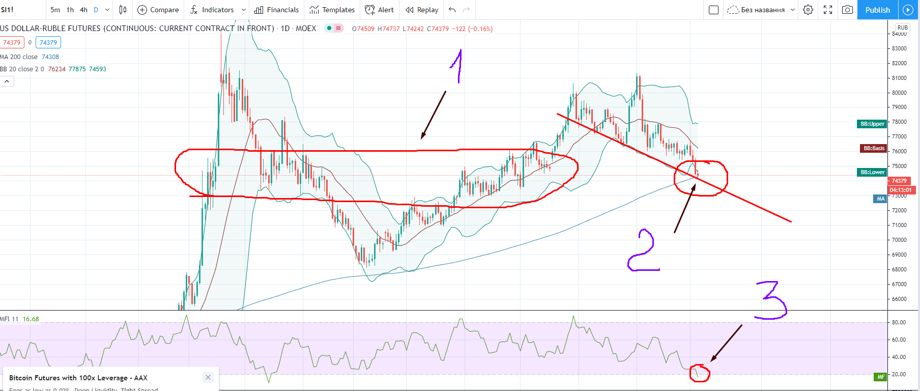 Сейчас мы подошли к довольно важным отметкам по фьючерсу на пару доллар/рубль, и эти отметки важны по нескольким причинам: