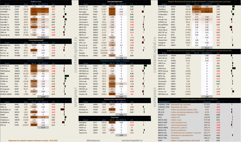 Динамика акций за текущий день, в структуре отраслевых индексов, и индексов государственного сектора.