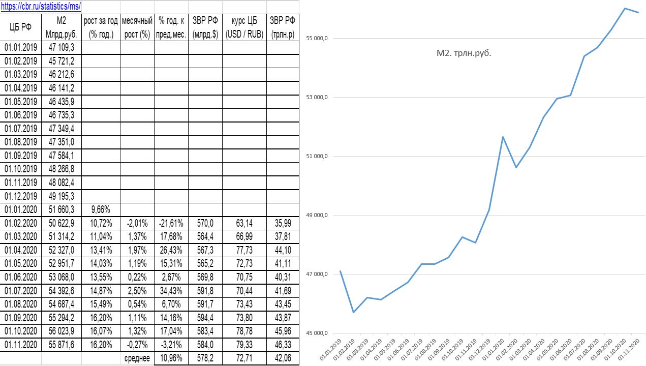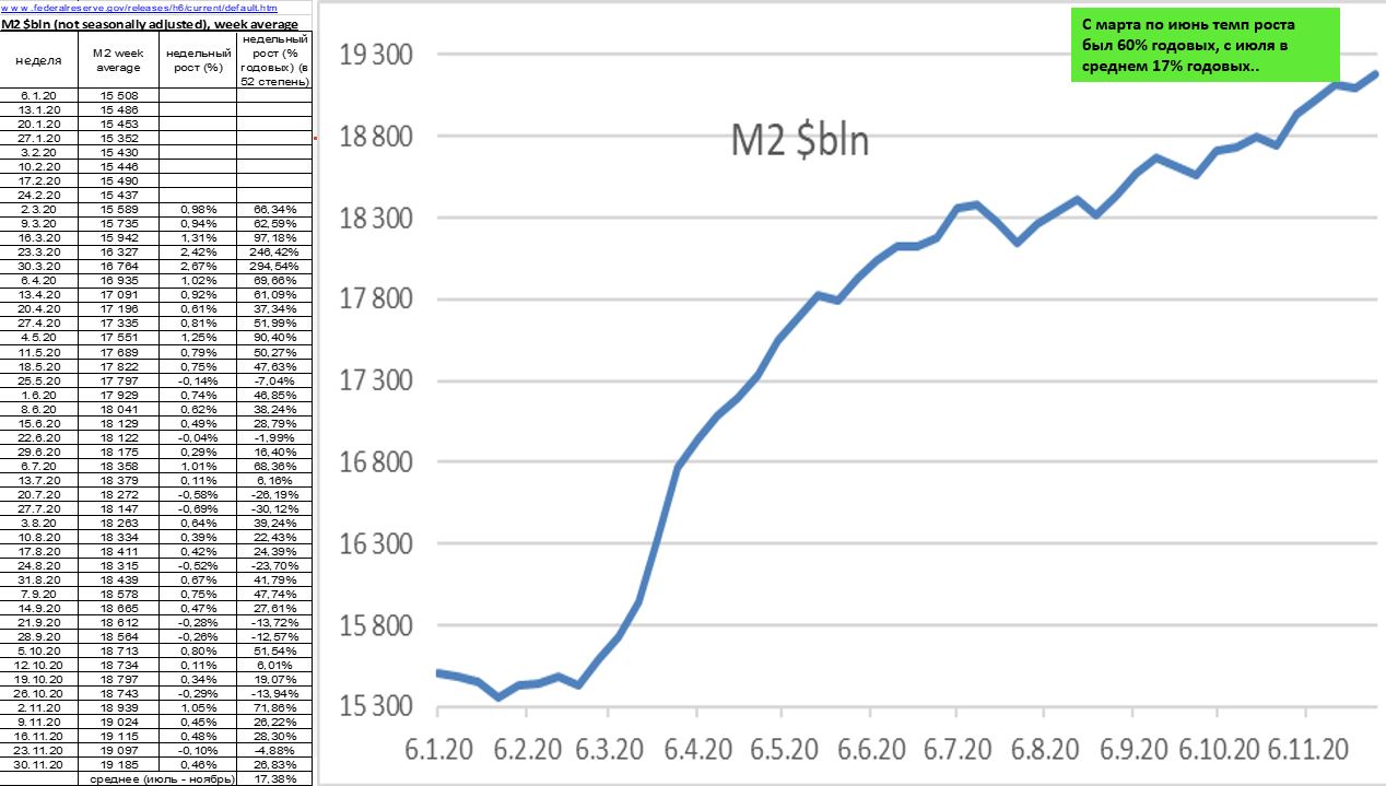 Обработал данные о динамике денежной массы с сайта ФРС,