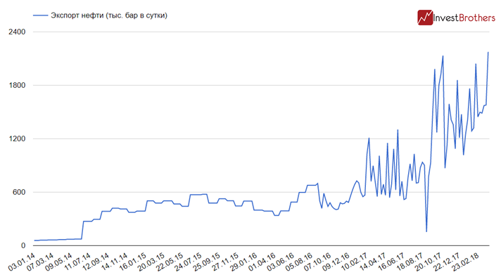 На этом фоне американская промышленность смогла установить новый рекорд по экспорту нефти. За неделю с 23 по 30 марта среднесуточные поставки вышли на уровень в 2,18 млн баррелей. Предыдущий максимум датировался октябрем 2017 г., тогда экспорт достигал 2,13 млн.