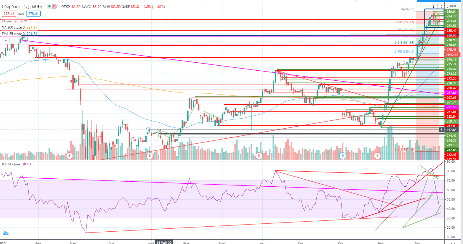 По большому счету в Сбере пока одна идея (https://www.finam.ru/analysis/marketnews/rost-nefti-mozhet-byt-prodolzhen-20201216-09350/) — «на часах опять же есть уровни, которые пока не сдаются, это зона — 275,5-276,25 (ур.гэпа), его можно использовать для покупки со стопом 275,3-. Больше идей в Сбере нет. Пока...