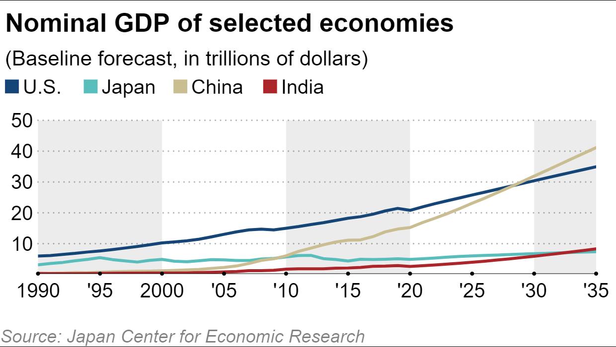 Пекин ставит цель роста экономики 5% на следующие 5 лет, что обусловлено стремлением стать страной с высокими доходами. Большое стареющее население Китая снизит рост ВВП на 3% к 2030 г.