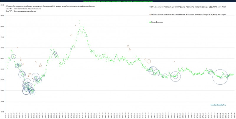 Объем сделок валютный своп по покупке долларов США и евро за рубли, по данным статистики ЦБ 2015 - 2018 г.: