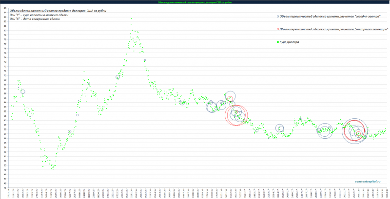 Объем сделок валютный своп по продаже долларов США за рубли, по данным статистики ЦБ 2015 - 2018 г.: