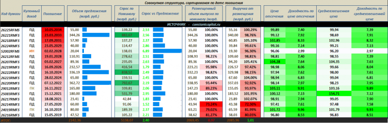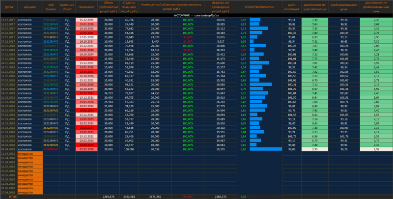 Полный список размещений ОФЗ, с учетом результатов последнего аукциона