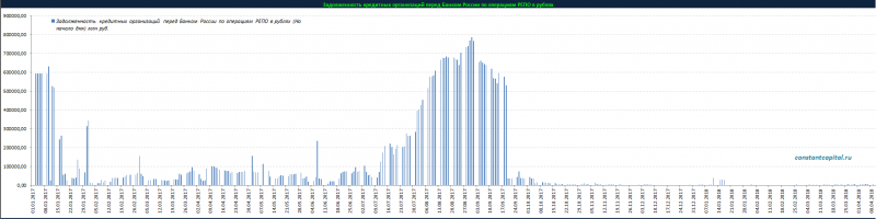 Задолженность кредитных организаций перед Банком России по Операциям РЕПО, находится на минимуме текущего года.