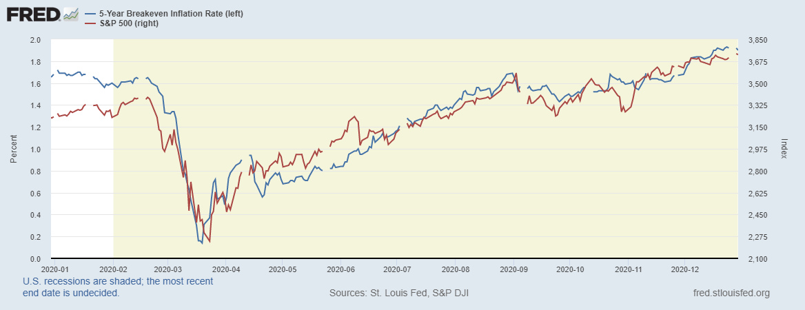 Красная линия – котировки широкого рынка, фондовый рынок США целиком и полностью детерминирован рефляционной политикой ФРС.