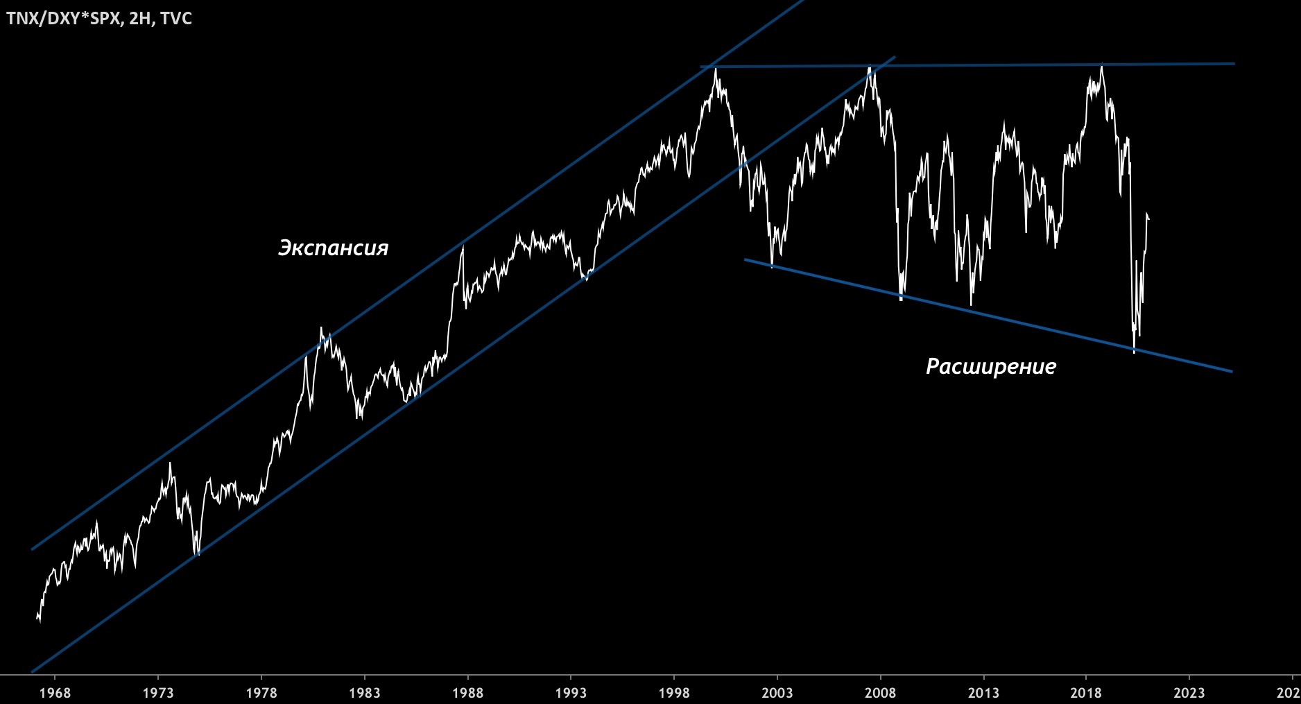 Такое сочетание трех компонентов, при котором спред рос в канале несколько десятков лет.