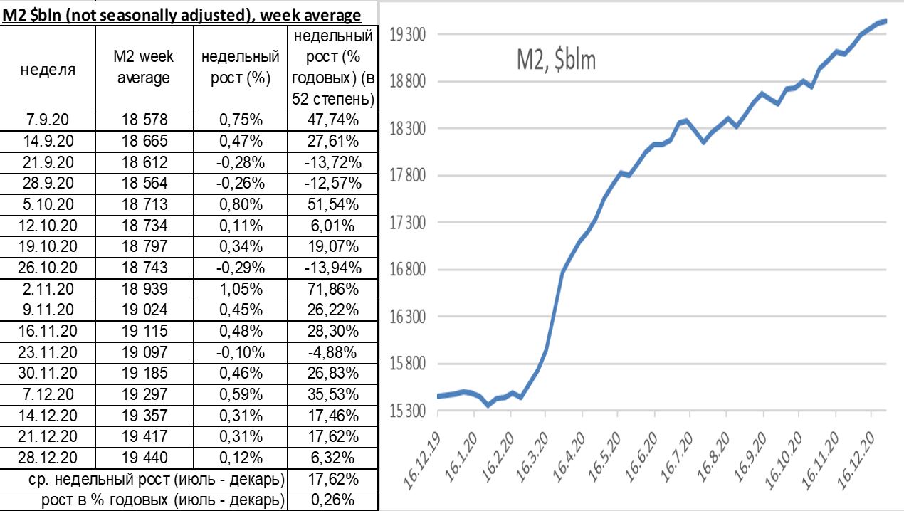 На сайте ФРС вышли свежие данные (28 12 2020) о денежной массе.