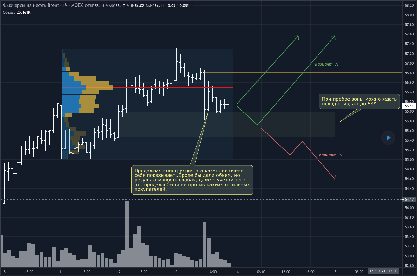 Я стараюсь не спорить с трендом и не пыжусь угадать разворот, но на данном уровне у разворота есть шансы. Все же, вариант "А" у меня лонг. Баром от 19:00 продавцы показали свою несостоятельность. Бар 16:00 хорошие продажи, 17:00 тест этих продаж, после чего нужно было топить вниз, но нет...