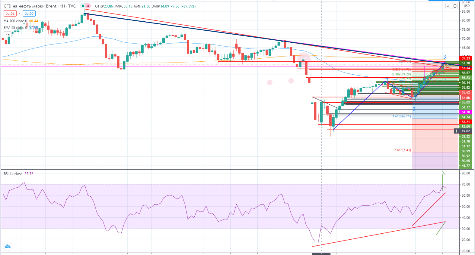 Газпром на днях рисует 5-тую волну роста, дивергенция понемногу начинает напрягать.