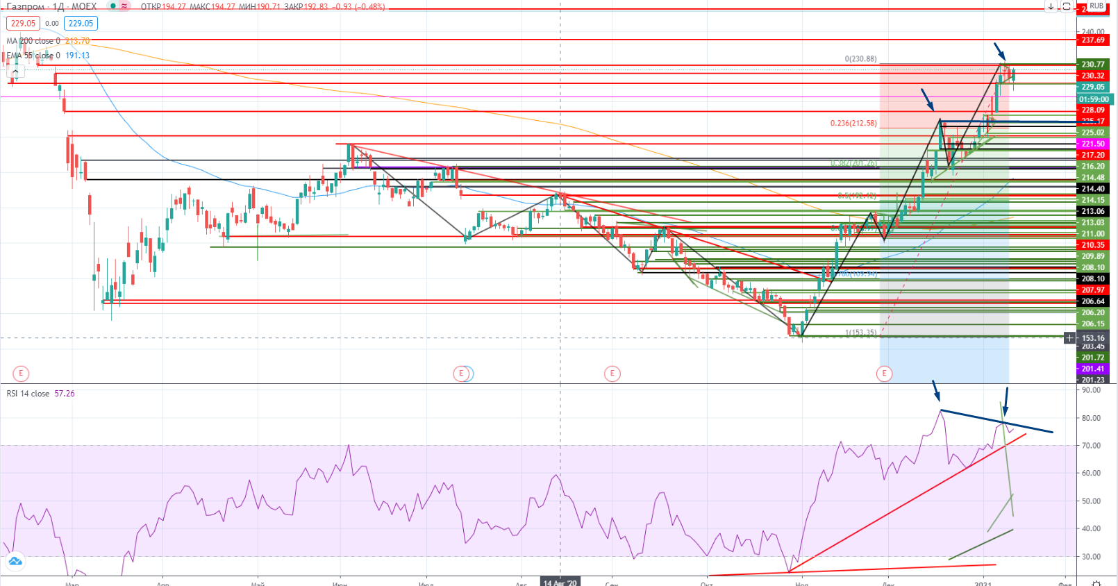 Но я не удержал лонг, оставленный накануне (https://www.finam.ru/analysis/marketnews/o-shorte-gazproma-mozhno-govorit-tolko-pri-proxozhdenii-otmetki-225-rubleiy-so-stopom-225-2-rubleiy-20210114-09350/) . Просто уровень был на днях, и надо было крыться либо по окончанию дня, либо при проходе на часах, я выбрал второе.