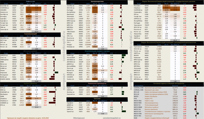 Динамика акций за текущий день, в структуре отраслевых индексов, и индексов государственного сектора.