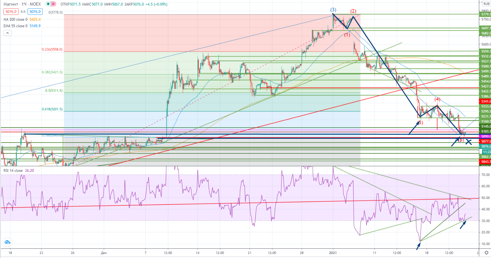 Как я и писал ранее в посте (https://www.finam.ru/analysis/marketnews/posle-inauguracii-baiydena-povysitsya-veroyatnost-sankciiy-dlya-rossii-20210118-09200/) :-- «Цена «застряла» примерно посередине между зоной сопротивления 5300-5350 и зоной поддержки 5012-5080. Так что в долгосрочной и среднесрочной перспективе можно ожидать торговлю в этом диапазоне, и поэтому можно использовать этот канал для торговли соответственно в обе стороны… Но это на daily, поэтому скорее всего я буду торговать в среднесрочном ключе.»
