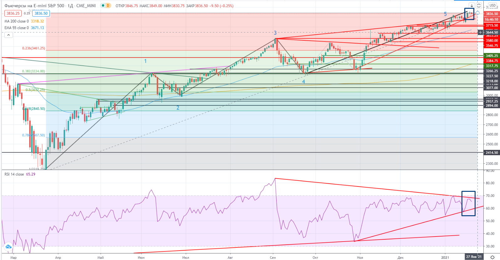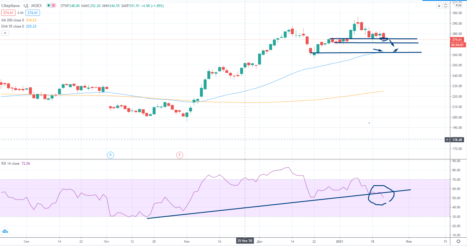 «Я в посте накануне ( https://www.finam.ru/analysis/marketnews/rost-cen-na-neft-priostanovilsya-20210121-09200/) писал: — «На нашем рынке ничего особенно не происходило, все в рамках пилы. Вообще я наблюдаю полную НЕКОРРЕЛЯЦИЮ в последнее время нашего рынка от внешних факторов. Например позавчера был позитивнейший день с точки зрения внешнего фона, а наш рынок в результате упал. Скорее всего из за перекупленности ранее.