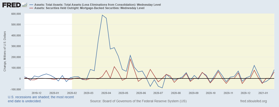 Баланс ФРС на прошлой неделе резко вырос на 81 млрд долларов, как обычно, это произошло в основном за счет скупки ипотечных облигаций