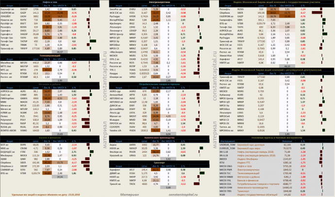 Динамика акций за текущий день, в структуре отраслевых индексов, и индексов государственного сектора.