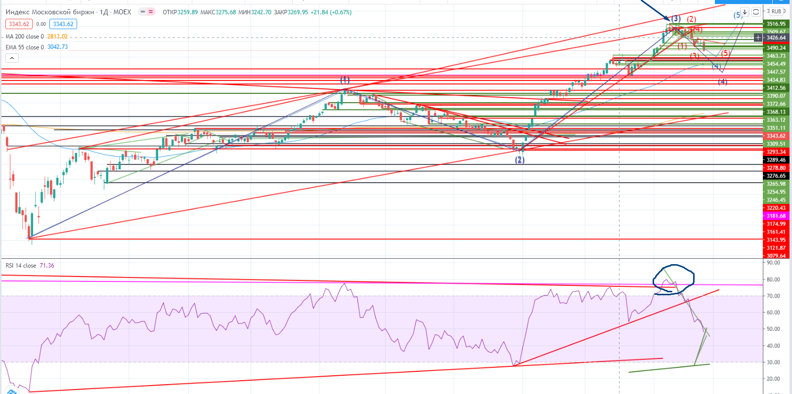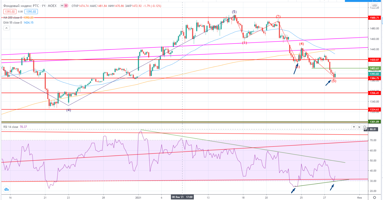 Вчера был очень непростой день на нашем рынке с точки зрения волновой теории Эллиота.
