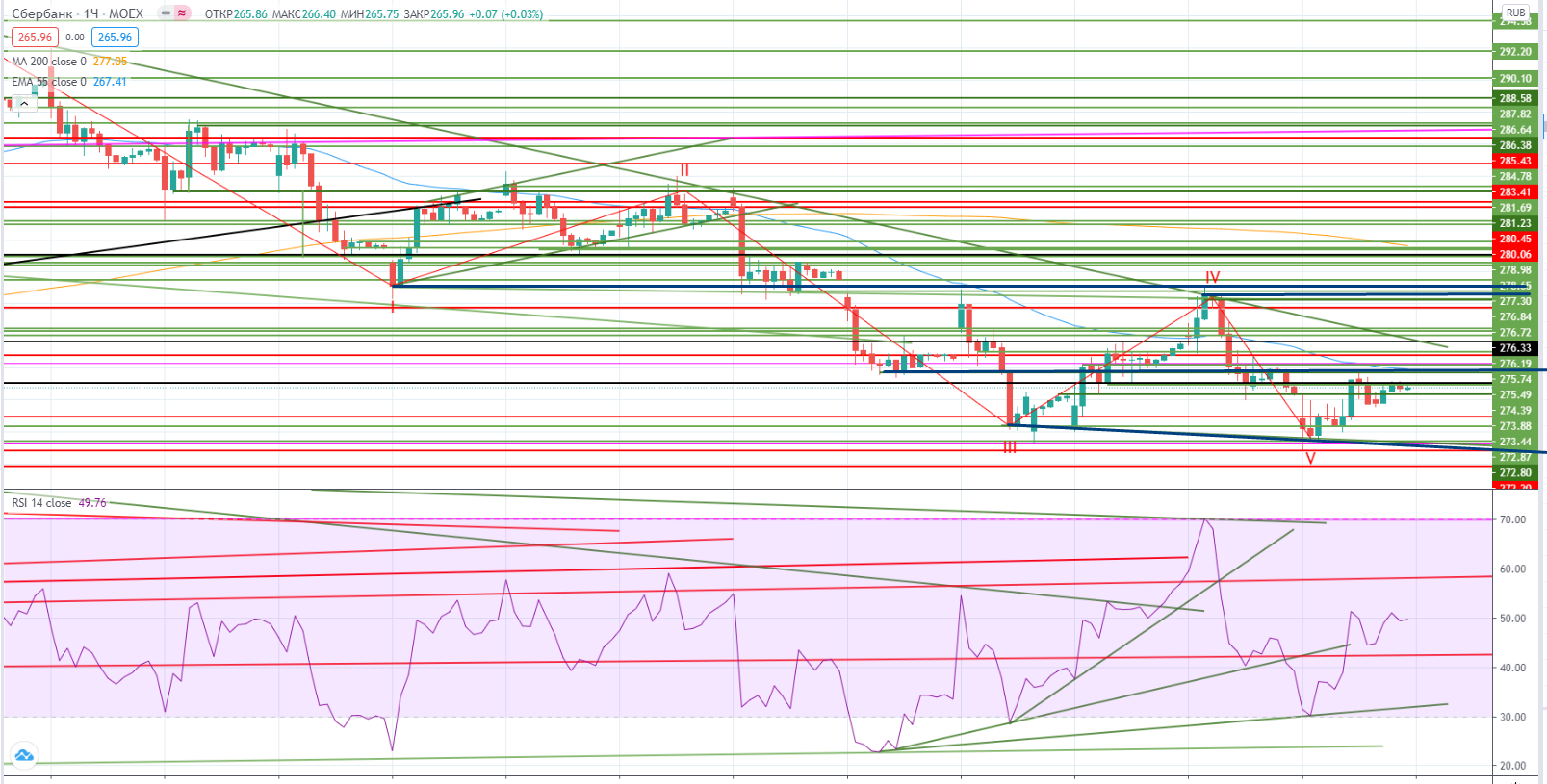 В Сбере на днях есть уровень 259,55-262,04, от него по идее должны отскочить. Но насколько сильный будет отскок говорить пока рано. Хотя на часах и сформировали что-то на подобии «двойного дна» с дивергенцией плюс выполнена программа минимум-сформирован 5-ти волновой классический импульс вниз. Теперь хоть можно строить теории, основываясь пока на этой идее.