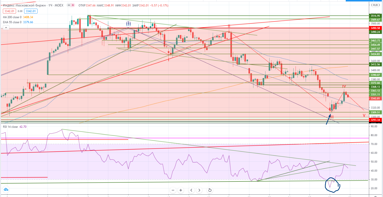 «На нашем фондовом рынке произошел все-таки отскок. Это отчасти прогнозировалось мною накануне. До зоны поддержки по нему 3276-3293 оставалось в моменте 1,2%. Что в принципе немного, относительно общего падения. Нужно крепко задуматься, а стоит ли крыться? Я бы не стал. Уровень рядом. Но конечно каждый решает сам!!!»- это мой пост вчера в середине дня, опубликованного в моемтелеграмм-канале ( t.me/scalponline ).