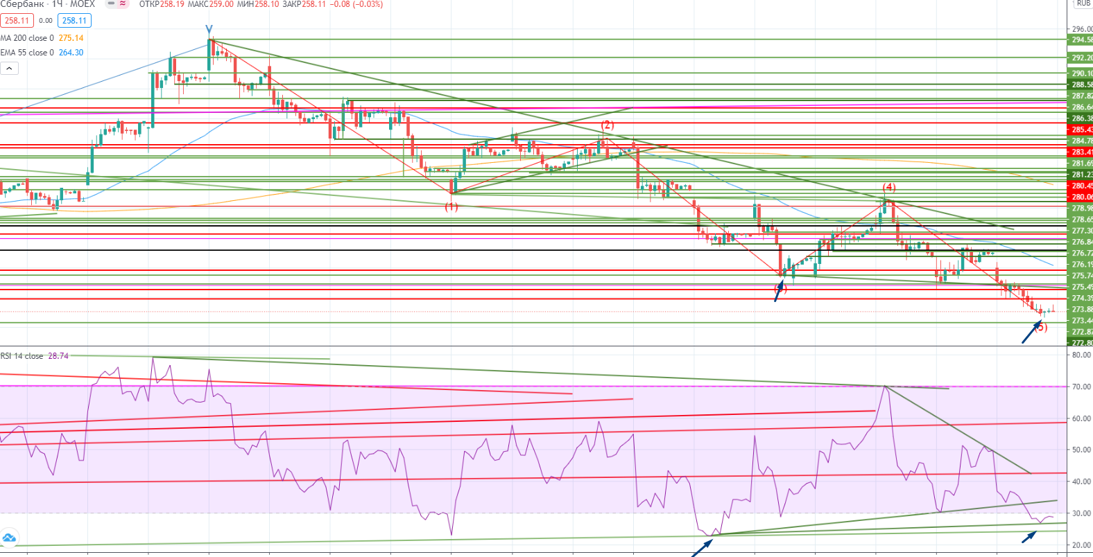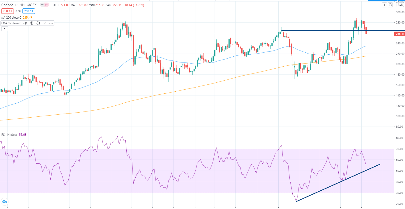 Вообще RSI у очень много бумаг находится на грани на часах. Очень неоднозначная ситуация. Ситуация действительно очень напряженная как для быков, так и для медведей. Никто не может с точностью определить дальнейшее направление движения. В том числе и я.