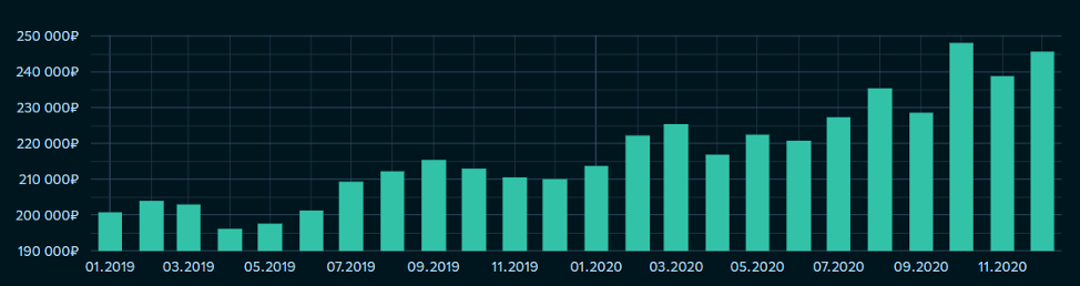 В целом 2020 год выдался позитивным для девелоперов, особенно для тех, чей бизнес сосредоточен в Москве и Санкт-Петербурге, где цены за кв. м. выросли на 25% г/г на фоне роста спроса благодаря введению правительством программы субсидированной ипотеки. Самолет является одним из бенефициаров этой программы.
