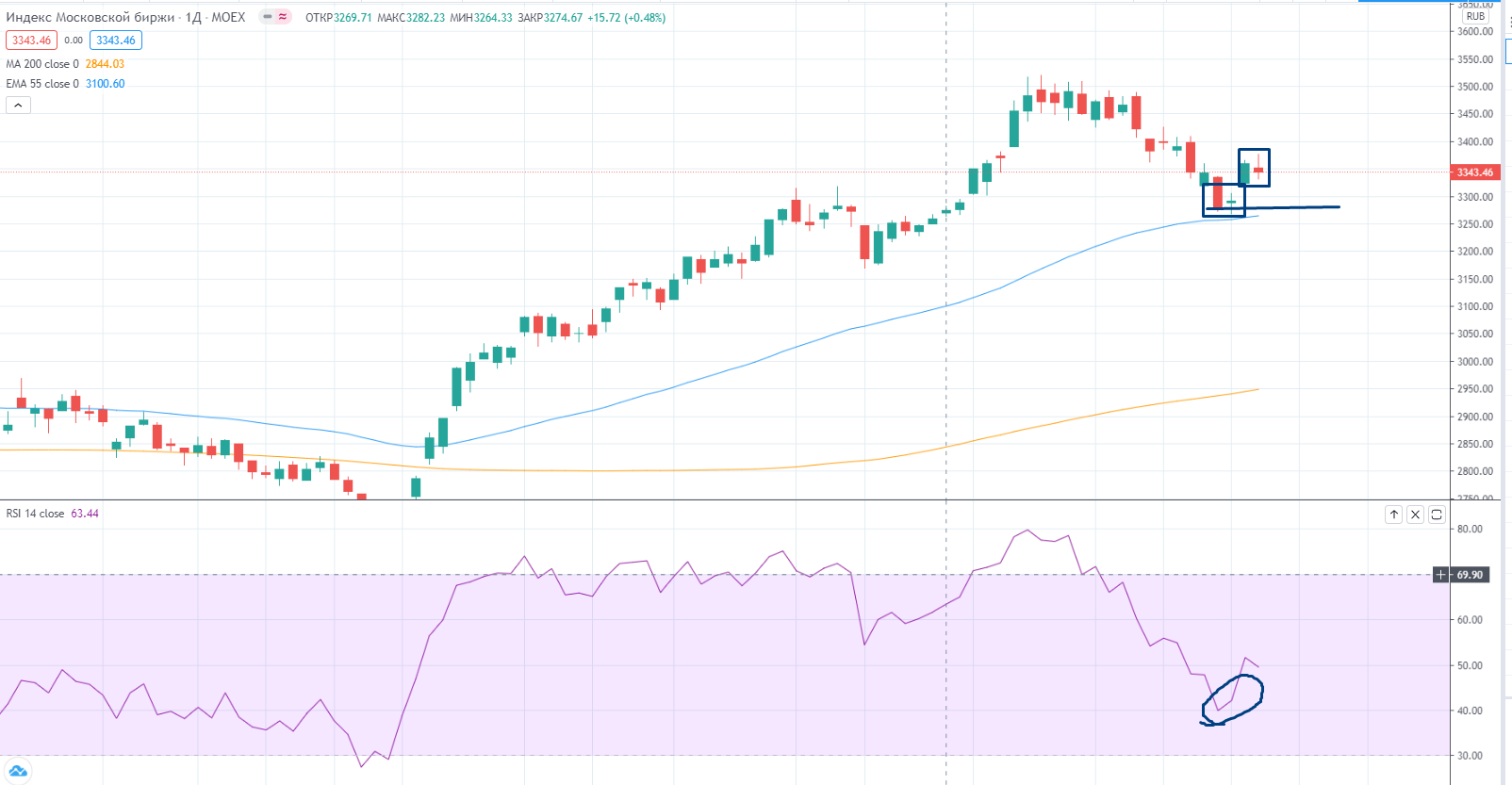 Опять же смущает отсутствие дивергенции внизу. Может посадка Навального что-то вроде пророчества? Может и без него наш рынок не чувствовал бы неуверенно через несколько дней, просто ситуация сработала с упреждением? Все может быть, такие ситуации уже случались. Но как бы там ни было, мы имеем, что имеем.
