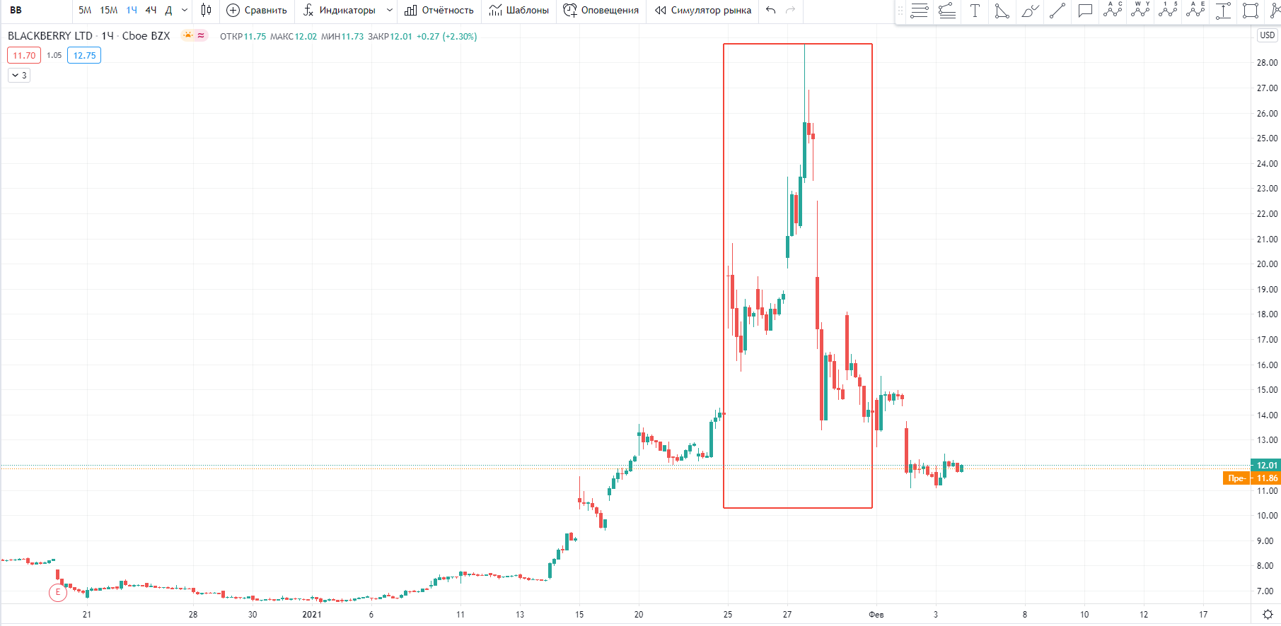 На графиках видно, что Nokia и Blackberry почти упали до своих прежних значений, за ними в скором времени подтянутся и GME с AMC, то есть в действии наблюдается обратный эффект (Dump). Таким образом, мы не рекомендуем участвовать в подобных историях из-за риска больших потерь.