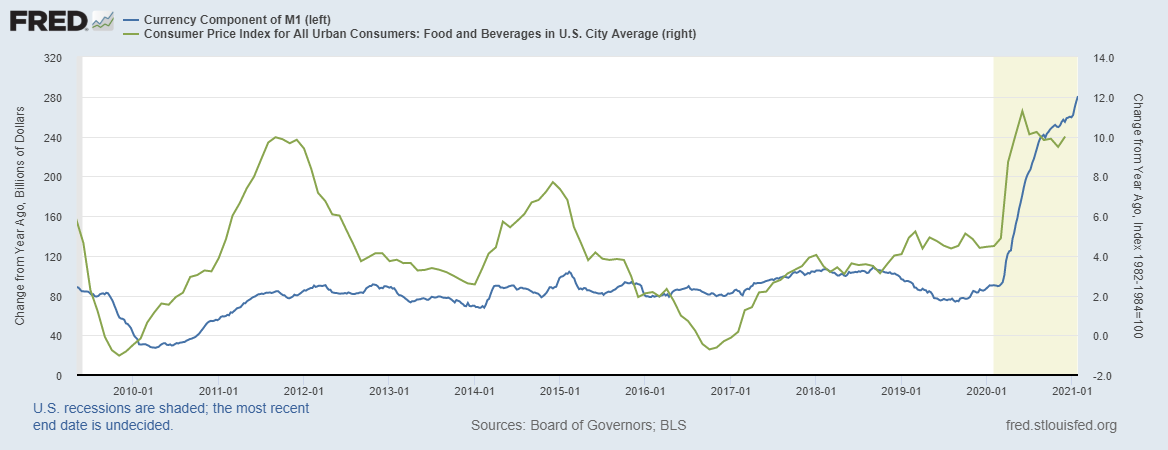Главный вывод из всего вышесказанного вытекает из ситуации с темпами роста высоколиквидных денег, которые очевидным образом оказывают поддержку продовольственной инфляции, и по всей видимости создадут проблемы ФРС уже в текущем году, т.к. на мой взгляд, инфляция спроса после снятия локдаунов начнет ускорятся.