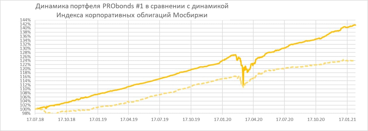 Ожидаемая доходность портфелей PRObonds на 2021 год остается на уровне 12% годовых. Все операции портфелей публикуются в открытом доступе до момента их совершения.
