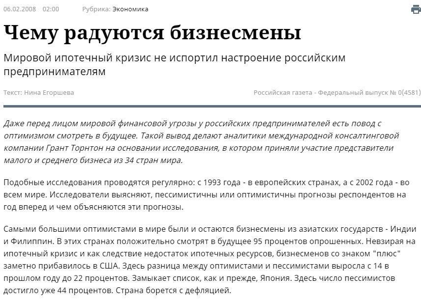В начале 2008г. разрыв между оптимистами и пессимистами и мире вырос в 14 раз,