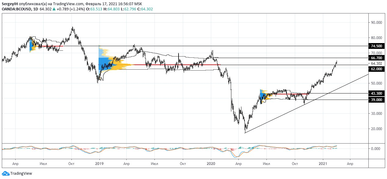 На таком бычьем фоне нефть показывает свой рост выше фундаментальных $60/барр.