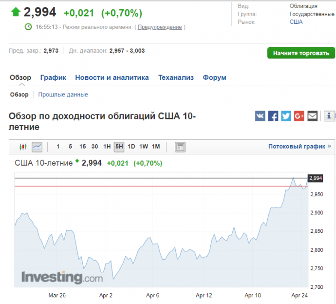 Десятилетки и нефть. Десятилетки американские сегодня штурмуют 3%: А нефть возможно тащат на экспирацию: 24.04.18 20:59 5108 Krechetov +6 Комментарии Нет комментариев. Ваш будет первым! Войдите или зарегистрируйтесь чтобы добавлять комментарии